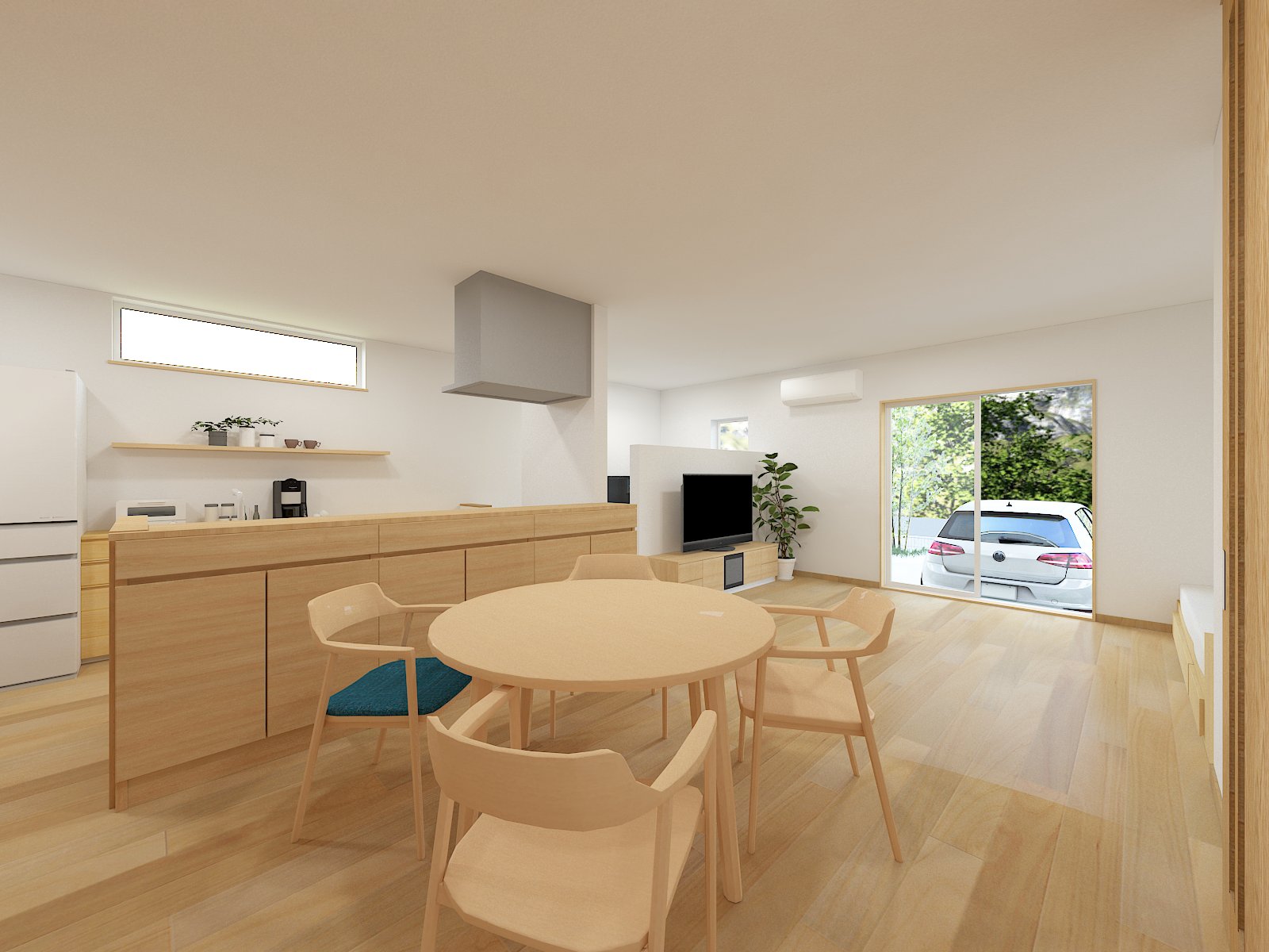ダイニングから使える収納としています。