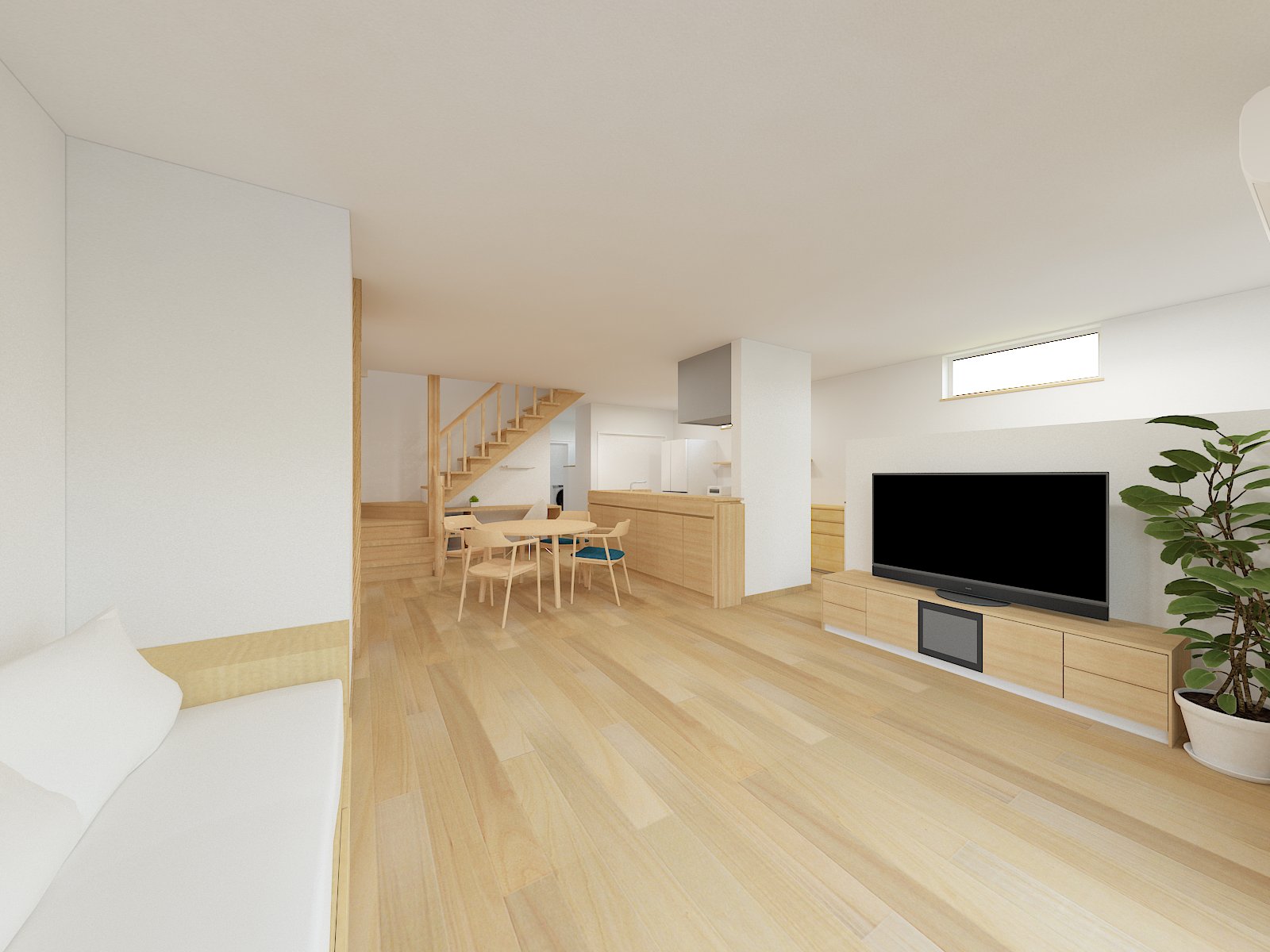 ダイニングの南側には造作ソファを設け、くつろげる空間としています。