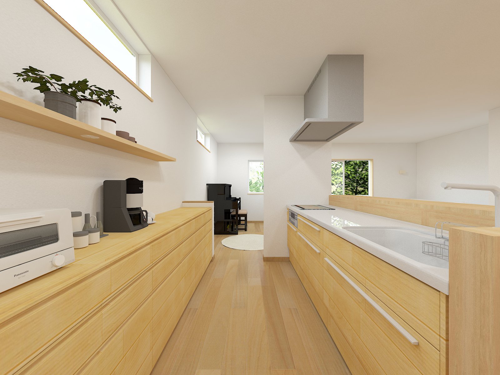 キッチンの対面には造作収納を設置。