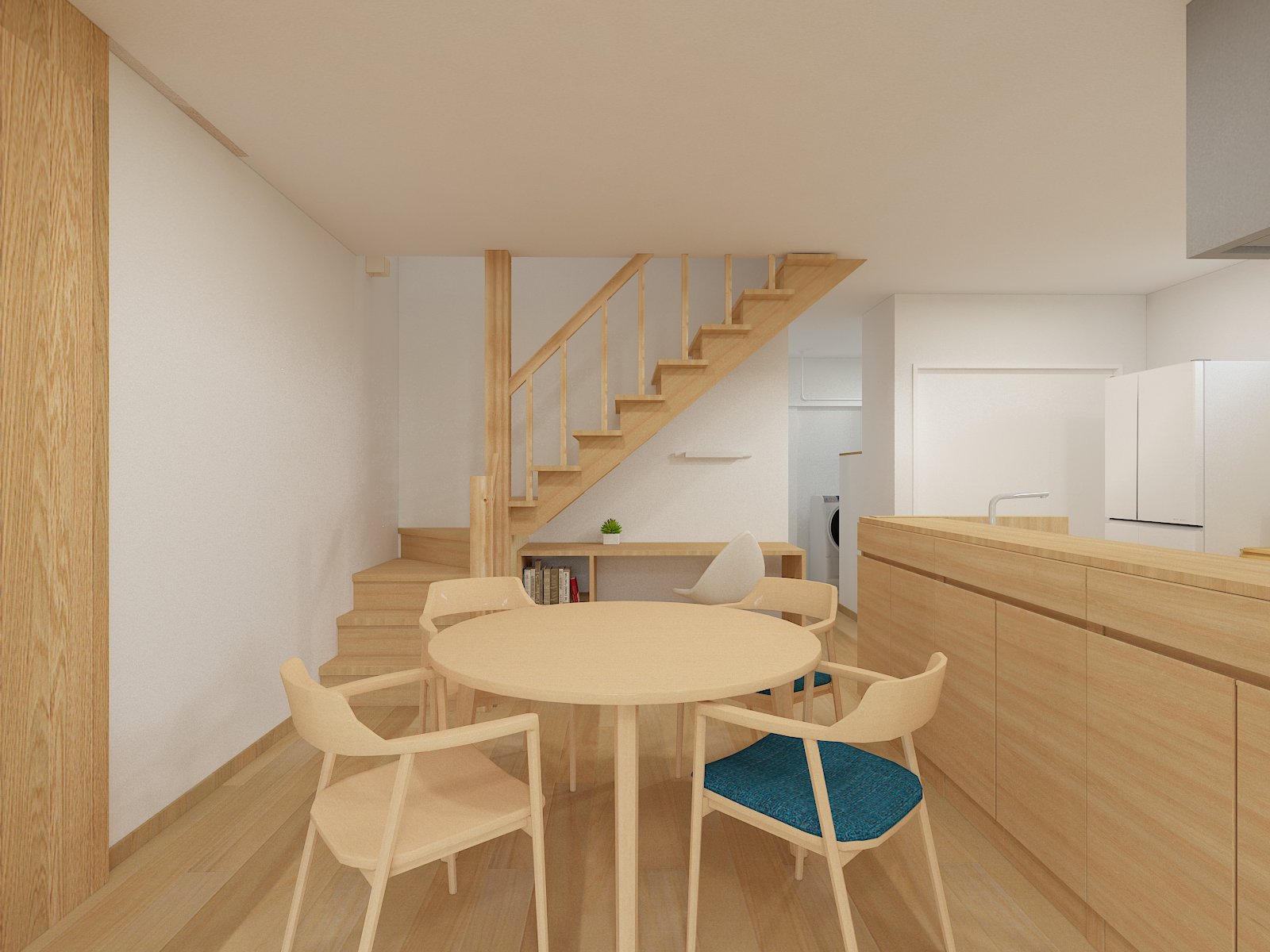 階段下の空間にデスクを設置し、スタディースペースとして使用いただけます。