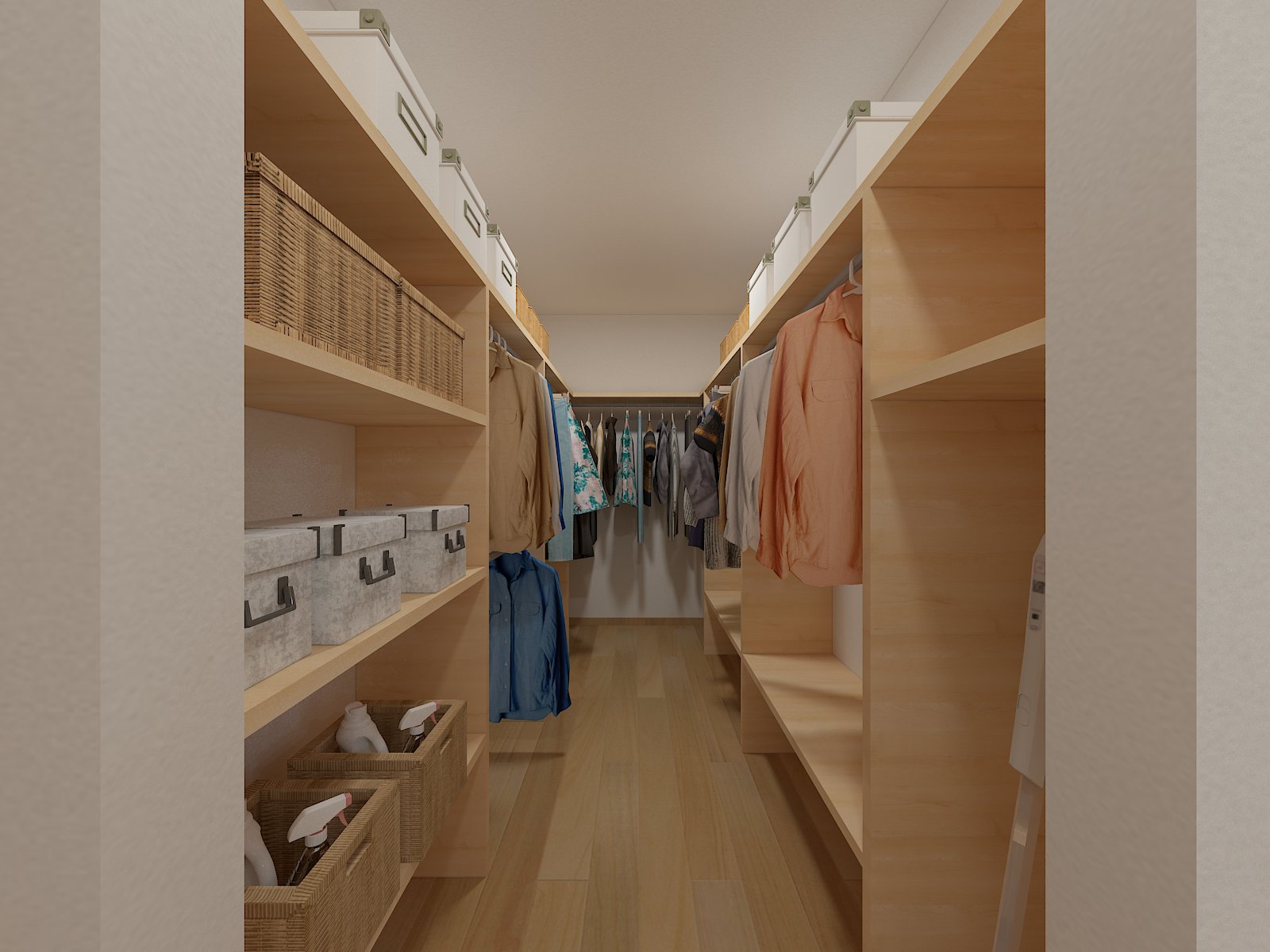 クロ―ゼットはスペースを区切って各個人の収納をつくることで