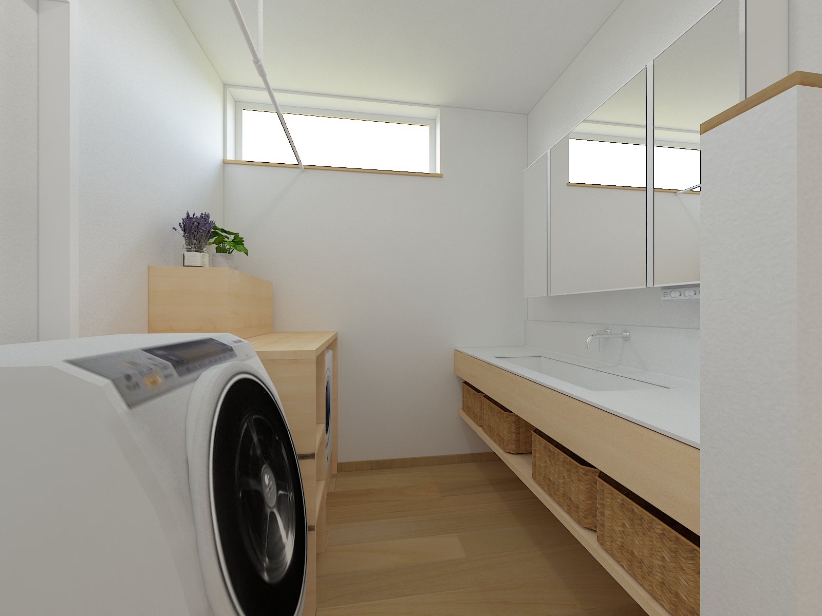 また水回りも集結し、洗濯動線を考慮した間取りにより