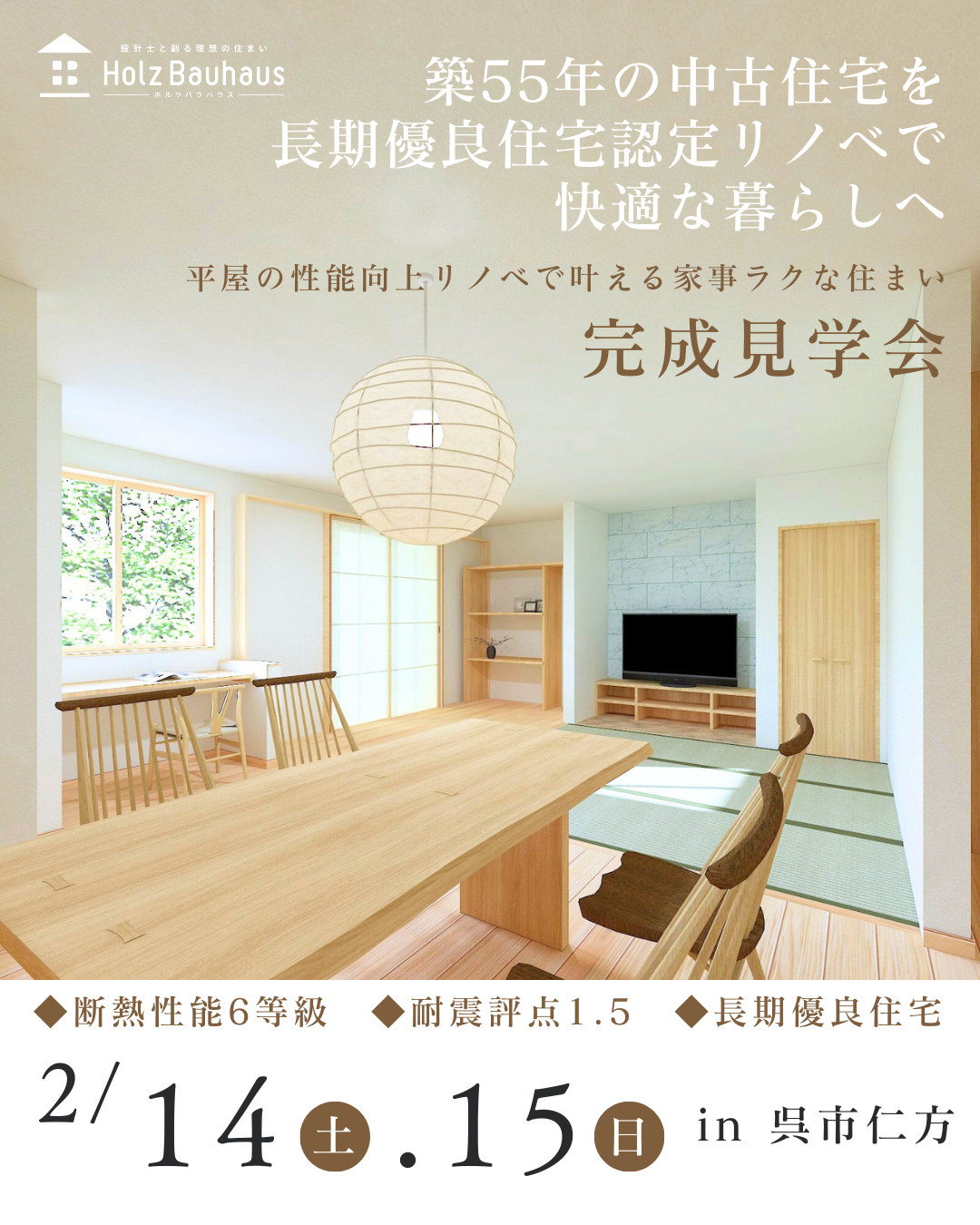 「築55年をこれからの家へ。平屋の性能向上リノベで叶える家事ラクな住まい」リノベーション完成見学会