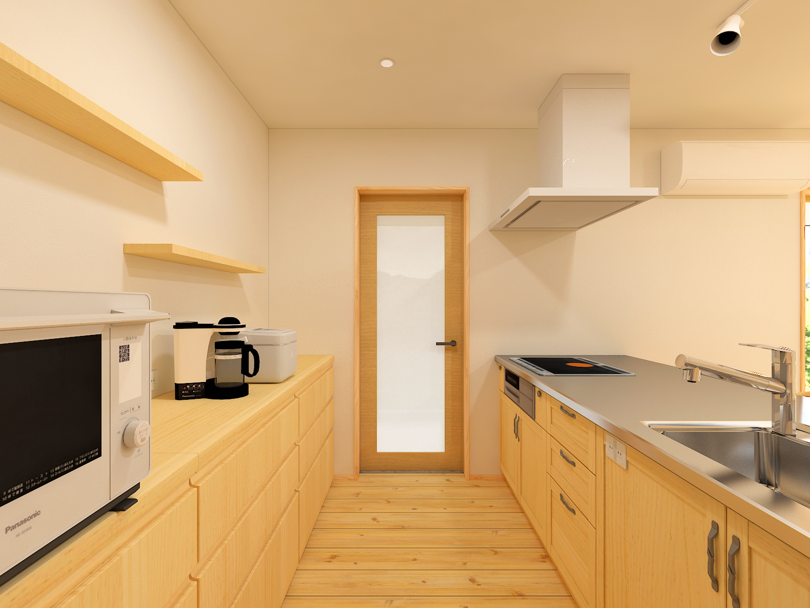キッチンは空間に溶け込む、無垢の木を使った