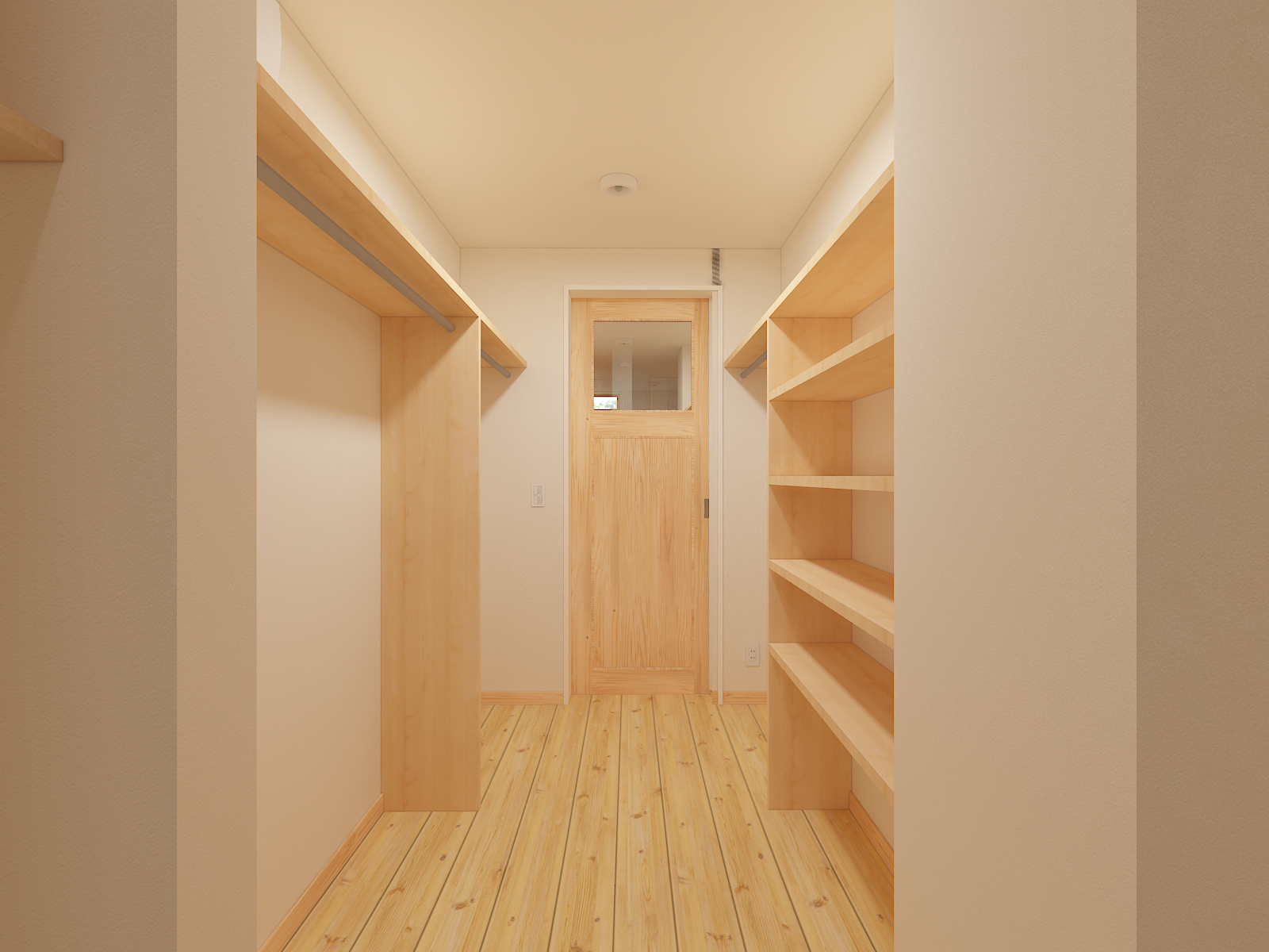通り抜けできるファミリークローゼットを設けています。